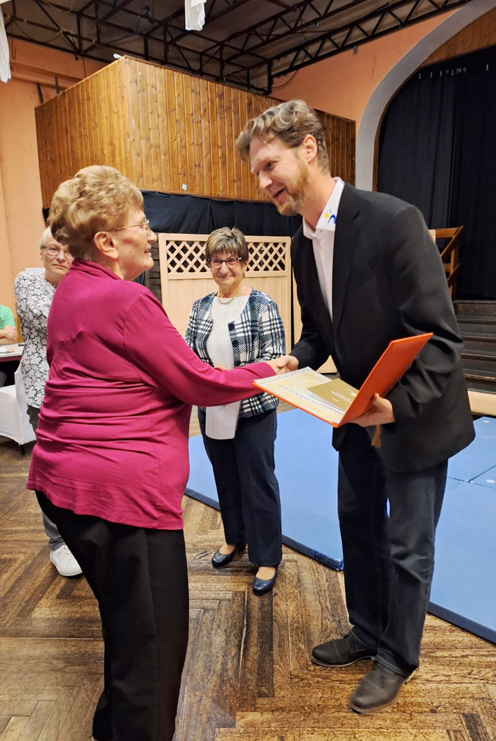 Mit Hilfe des Vereinswettbewerbes „so geht sächsisch“ haben wir am 25.08.2024 unser langjähriges Vereins- und Gründungsmitglied des Frohburger Turnvereins, Doris Gey, geehrt.
